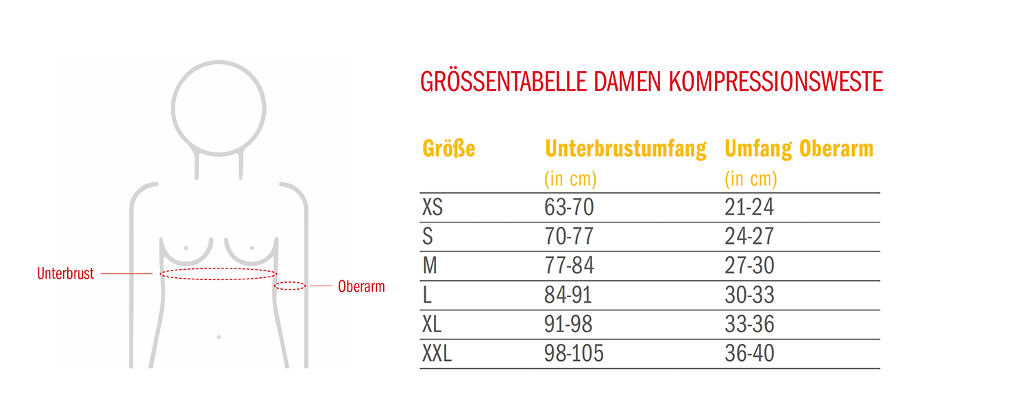 Bitte beachten Sie, dass die Kompressionsweste aus hygienischen Gründen vom Umtausch ausgeschlossen ist.